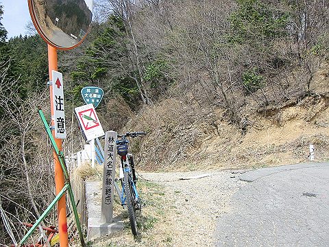 大名栗林道の入り口、名栗湖にデボした車からここまで8.5kmしかないが、ず〜っと心臓やぶりの急な登りが続く(大汗かいた) |