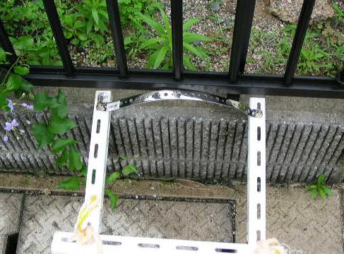 補強金具は厚手の鉄板(t=2mm)が良いとおもいます。以外と力がかかり薄いとすぐに変形します(写真−3)。
