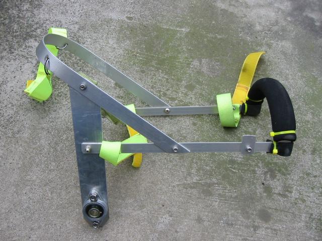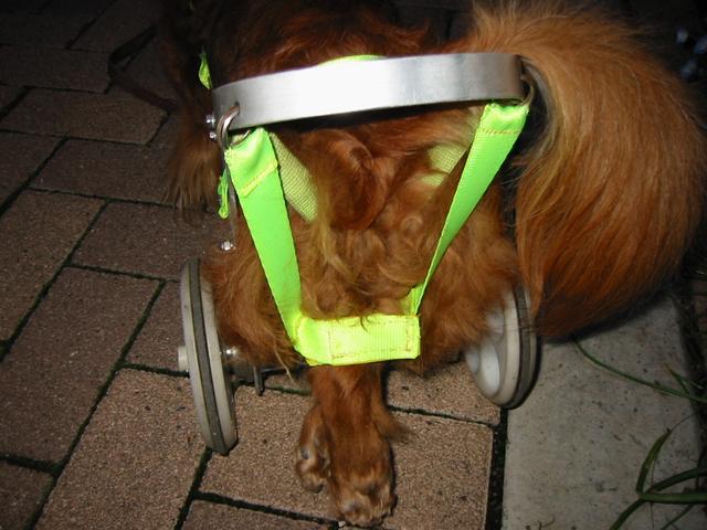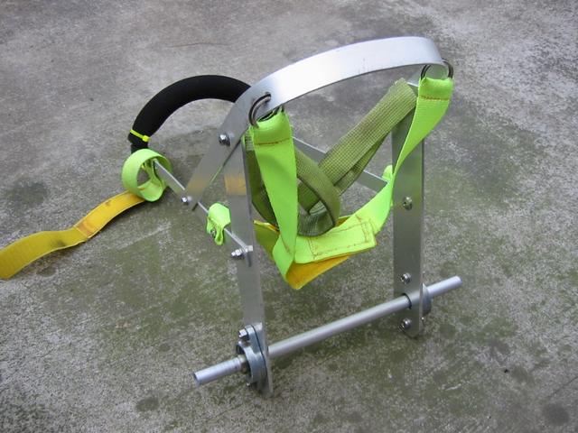 後ろの黄色いベルトは、後ろ脚を吊るためのナイロンベルトです。 |