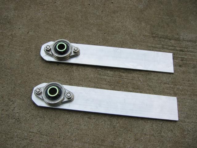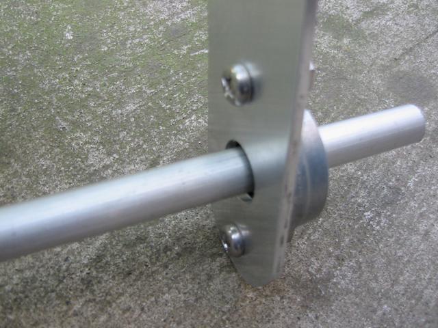 幅40mm厚さ3mmのアルミ板をカットし、フランジ付きベアリングを取り付けたところです。 |