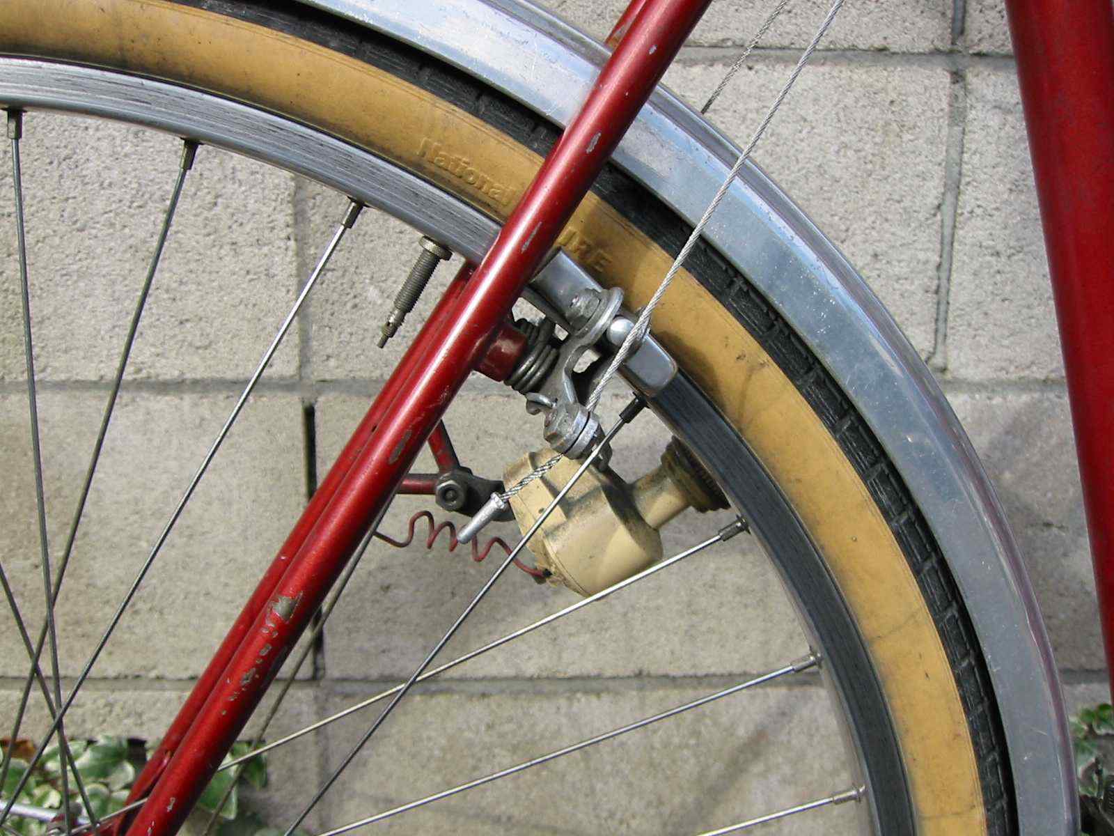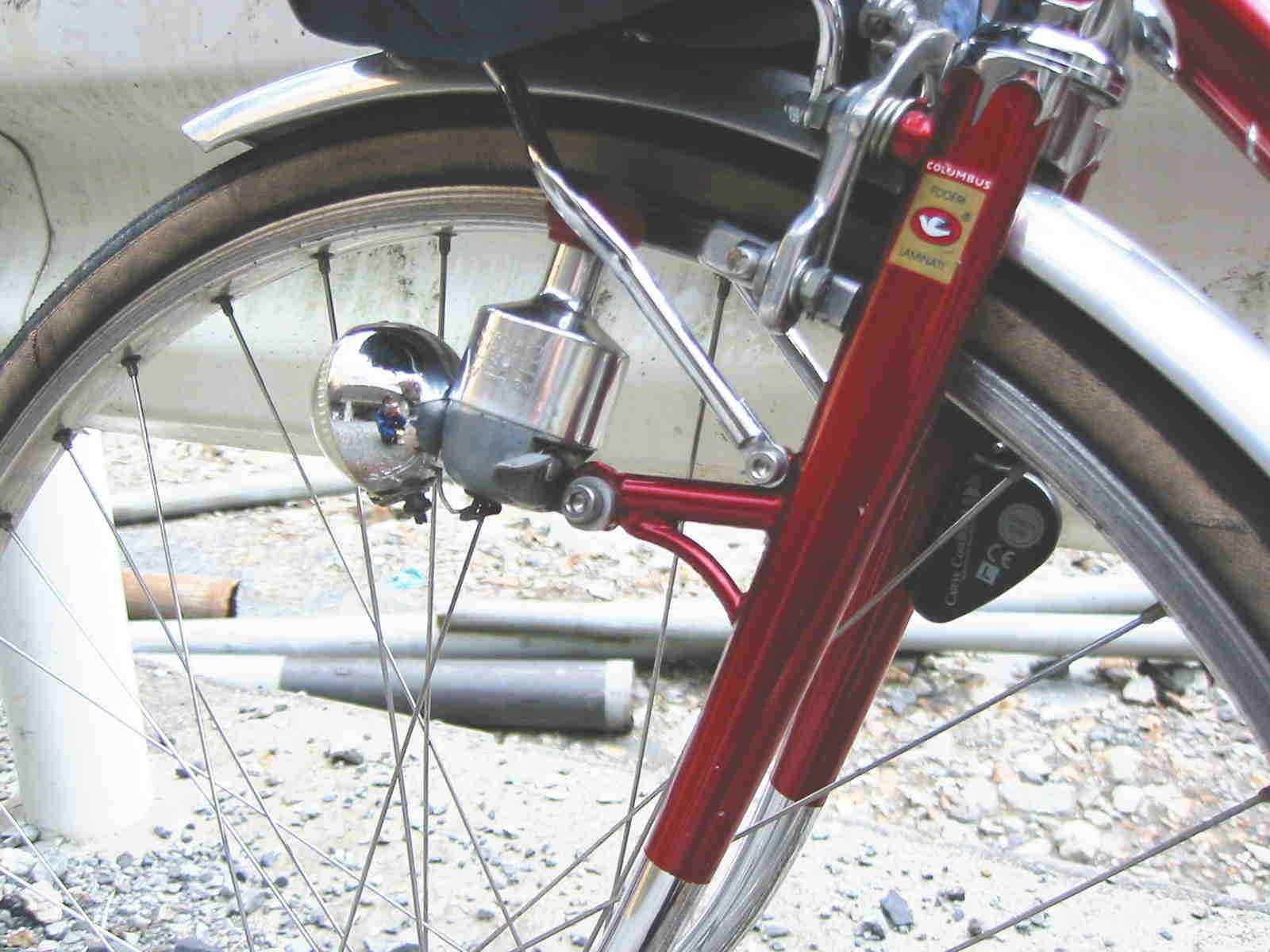 マファックのカンティブレーキとソービッツのダイナモですが、カンティブレーキワイヤーの取り回しに滑車を使用しました。 |