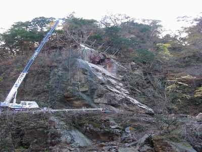 道路の崩落現場 みごとに道が崩れている