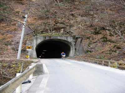 峠の頂から八丁トンネルに入る