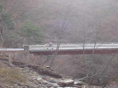 真っ暗な八丁トンネルを抜け、峠の小鹿野側を望む 標高1250m付近