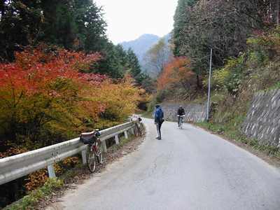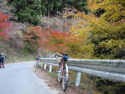 2001.11.17 中年チャリンコ団のメンバーで、健脚 NO.1位・.2位のTakaoka氏Okano氏と三人で、秋の秩父中津川林道・八丁峠越えツアーに行き、晩秋のみごとな紅葉を堪能して来ました。