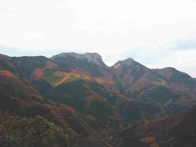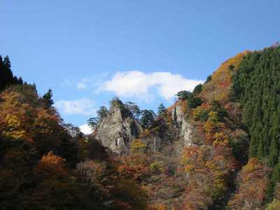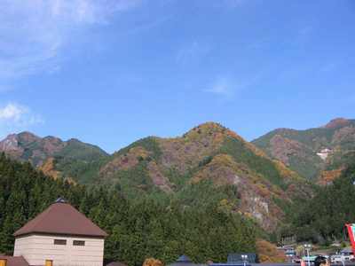 途中の大滝温泉で小休止、山がみごとに色づいている
