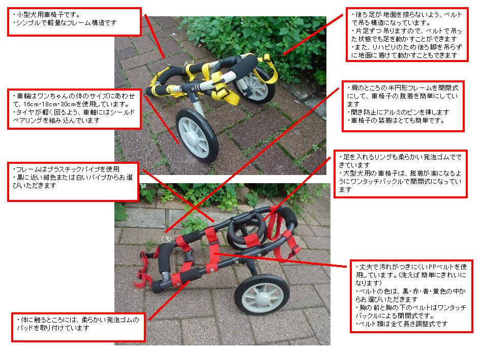 ・後ろ足の吊り下げ方の参考になりますので、ワンちゃんの症状をお知らせください。(できれば、車椅子を使用して問題ないか、事前に獣医さんの診断を受けてください)