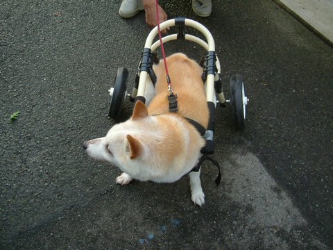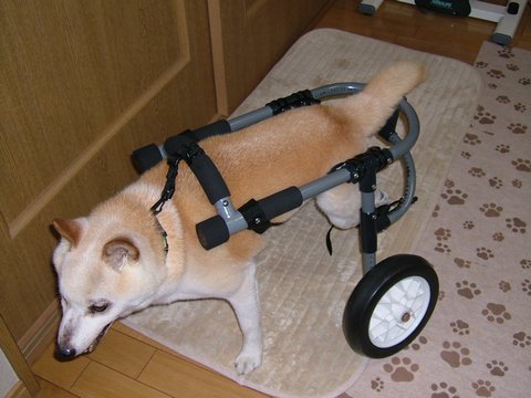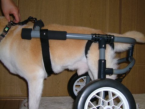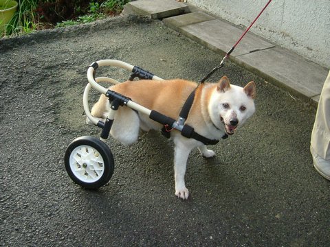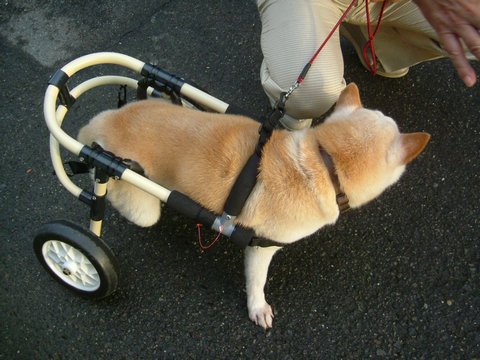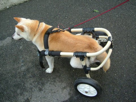 前足だけで家の中や庭を歩いています。 散歩はたまに後ろ足にハーネスのようなものをつけて ベルトで人間が持ち上げて連れて行きます。