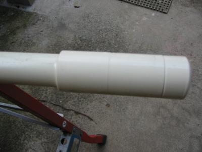 車軸のボルトを取り付ける部分は、パイプの上にストレートコネクターを接着して強度を確保しました。またパイプの先端にもキャップを接着します。 |