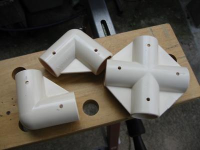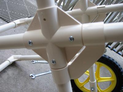 カットしたパイプをコネクターに差込み、タッピングビスで組み立てて行きます |