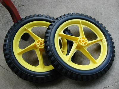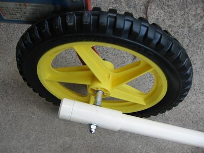 車輪はOGK製の直径30cmミニホイールを使用しました。(前にフントの車椅子やさんからご好意でいただいた物です) |
