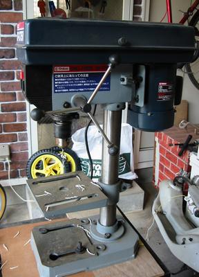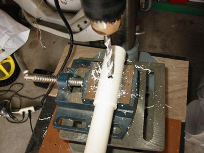 パイプやコネクターに穴を開けるために、ボール盤を使用しました。 |