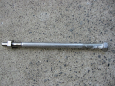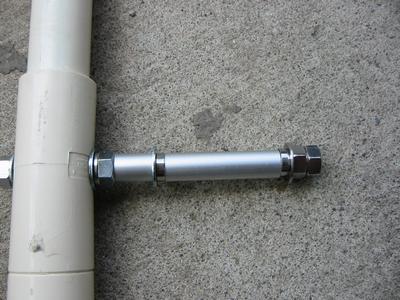 車軸も直径8mm長さ15cmのステンレスボルトに変更しました。 |
