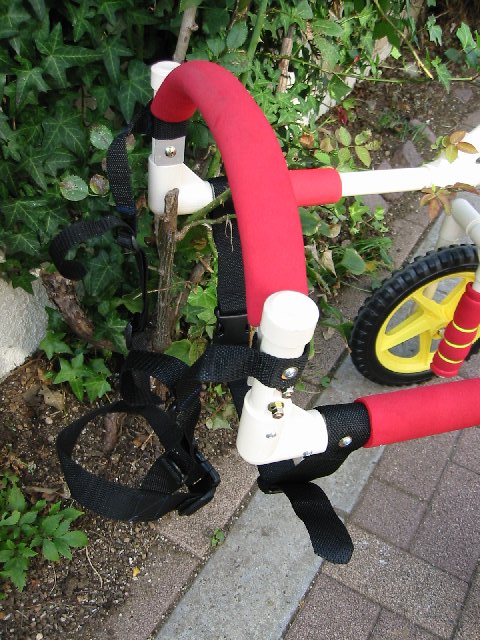 フレームサイズは、ほぼピッタリで調整の必要はありませんでした(イブちゃんは車椅子を付けた後すぐに、嬉しそうに早足で歩いてくれたそうです) |