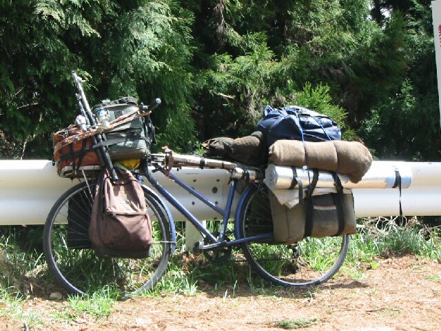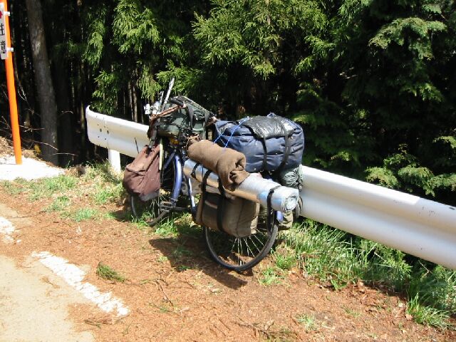 途中で、長距離キャンピングツアーの自転車を発見。なぜか人は見当らなかった(釣り竿までくくりつけてある)