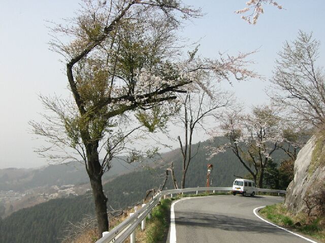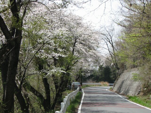 定峰峠の下りは桜が有名で、標高が高いので遅咲きだが、今年はもう咲いてしまっていた