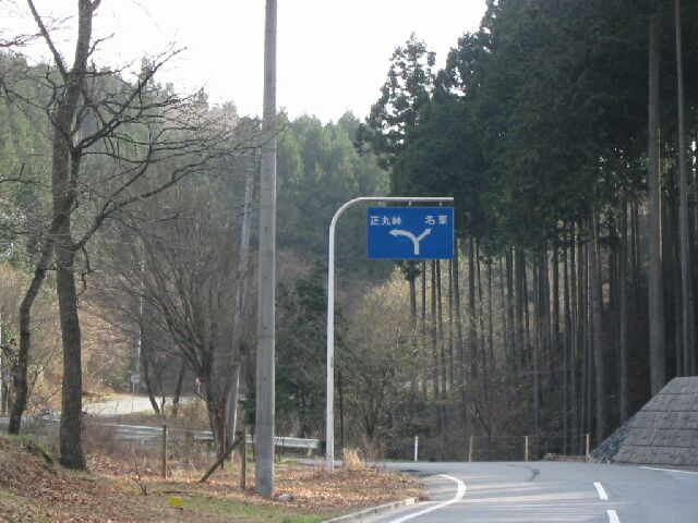 山伏峠の下り、下に道が見える。