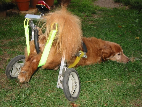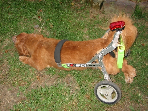 はなちゃんは後ろ足が弱ってきているので、お腹を吊ってもらいながら毎日散歩していますが、短い距離ならば自分で歩くことができますし、まだまだ食欲も十分あります。 |
