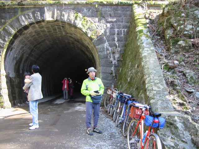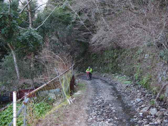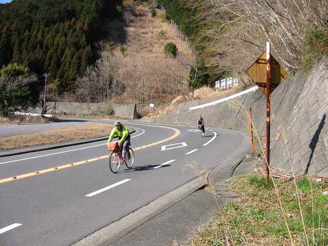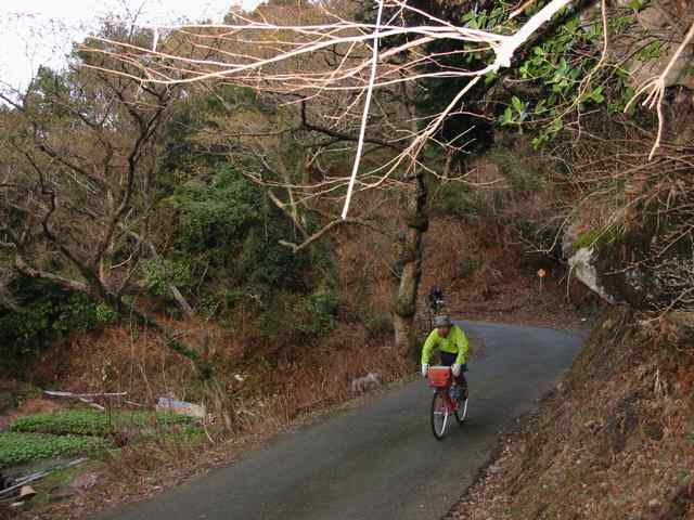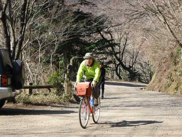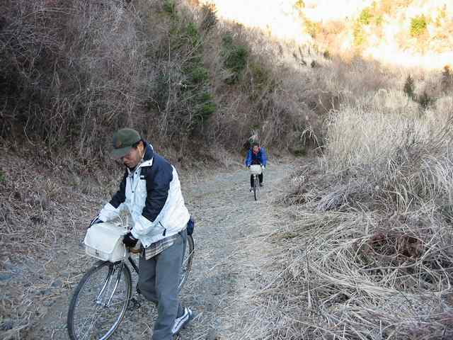 今回のツアーも二日間とも天気に恵まれ、暖かい日差し中を快適なサイクリングを楽しんできましたが、初日に越えた大鍋林道は、路面が荒れて、登り坂も非常にきつく、ランドナーでは延々と押して登ることしか出来ず、おまけに何と下り坂も乗れない様なハードな林道でした。