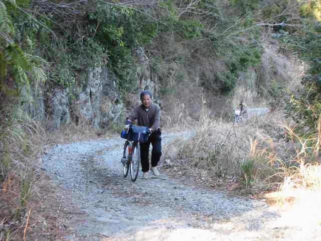 登りもきつく、ひたすら自転車を押す