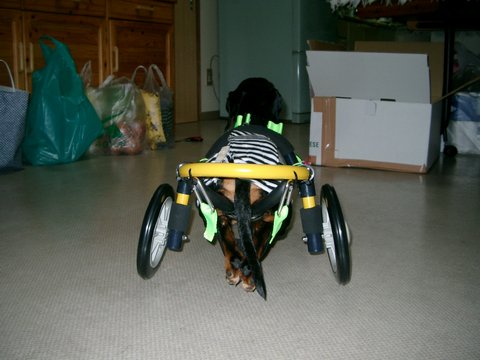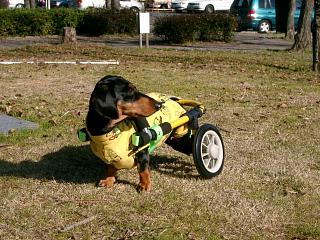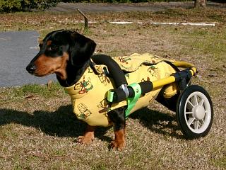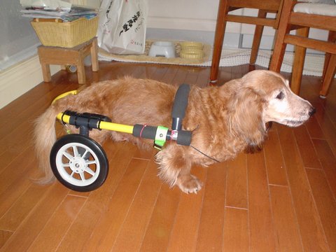 2004年12月、ヘルニアの手術で歩けなくなってしまったMダックス海ちゃんの車椅子を製作しました。