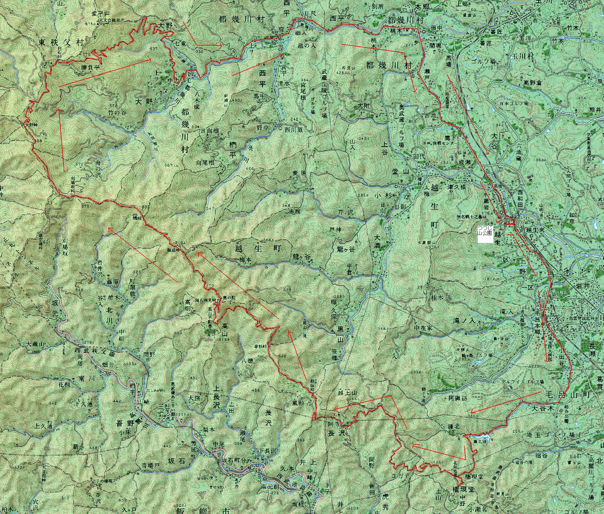 今回は、越生のつつじ山公園に車を置き、いつものように周回コースを走りました。
