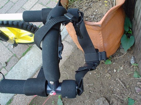胸ベルトを取り付けたので、体が前に出ることはなくなりました。何か嬉しそうな顔をしているように見えますね。 |