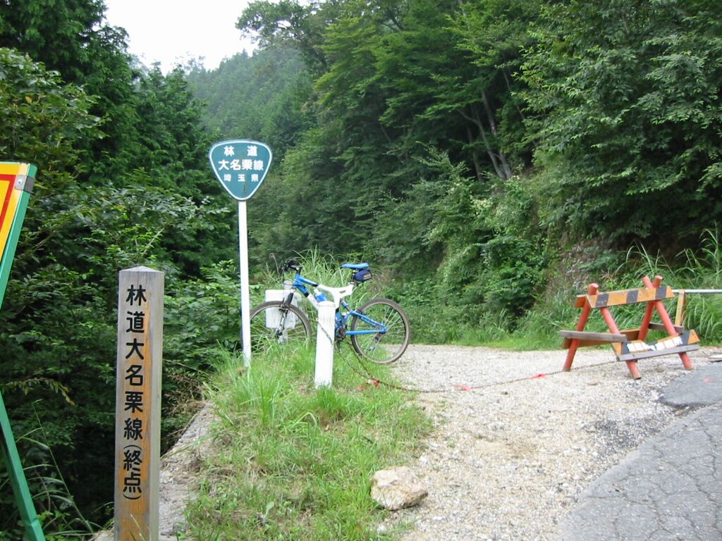 日頃走っているホームコース以外に、近場で手頃なツーリングコースをインターネットで捜したところ、 オフロードバイクで、関東近県の林道を走っている「健さんのホームページ(http://homepage2.nifty.com/kenkensan/)」に 名栗湖(埼玉県)の先の「大名栗林道」が紹介されていました。 車で行けば我が家からも近く、周回コースもとれそうなので、2001年8月に走ってきました。