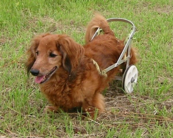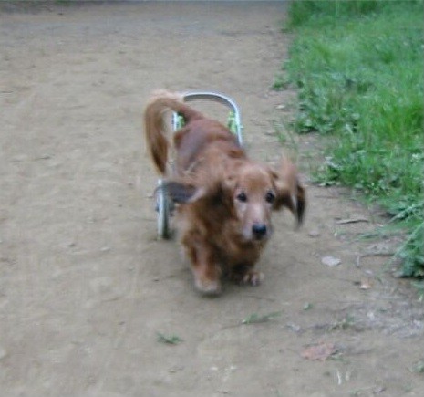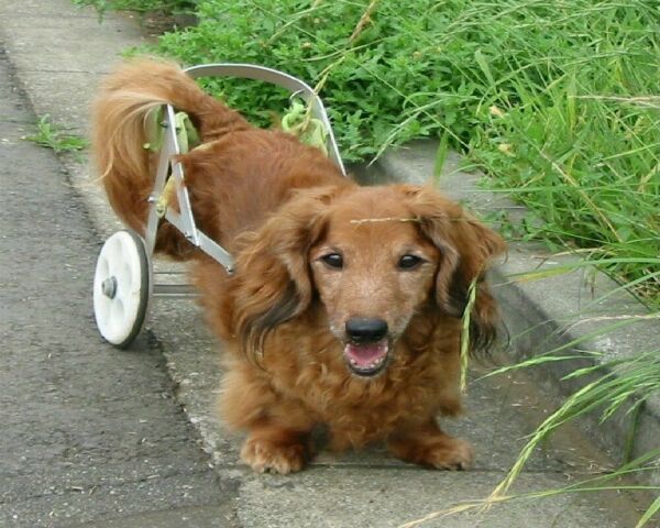 ミニチュア・ダックスフントは、その体型からヘルニアになる確立が高いそうですが、近所の公園でも、時々下半身麻痺になった犬の話を聞くことがあります。この様な可哀想な犬たちと飼い主の参考になればと思い、車椅子製作レポートを綴ります。なお、このページを見て、自分で車椅子の製作を考えている方・また何か情報を持っている方は、ぜひ掲示板に書き込み及びメールをお願いします。