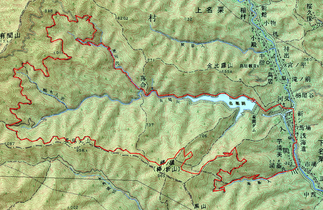 カシミール3Dの5万の地図では、棒ノ嶺付近の道路が表示されていないので、適当に描画してあります。