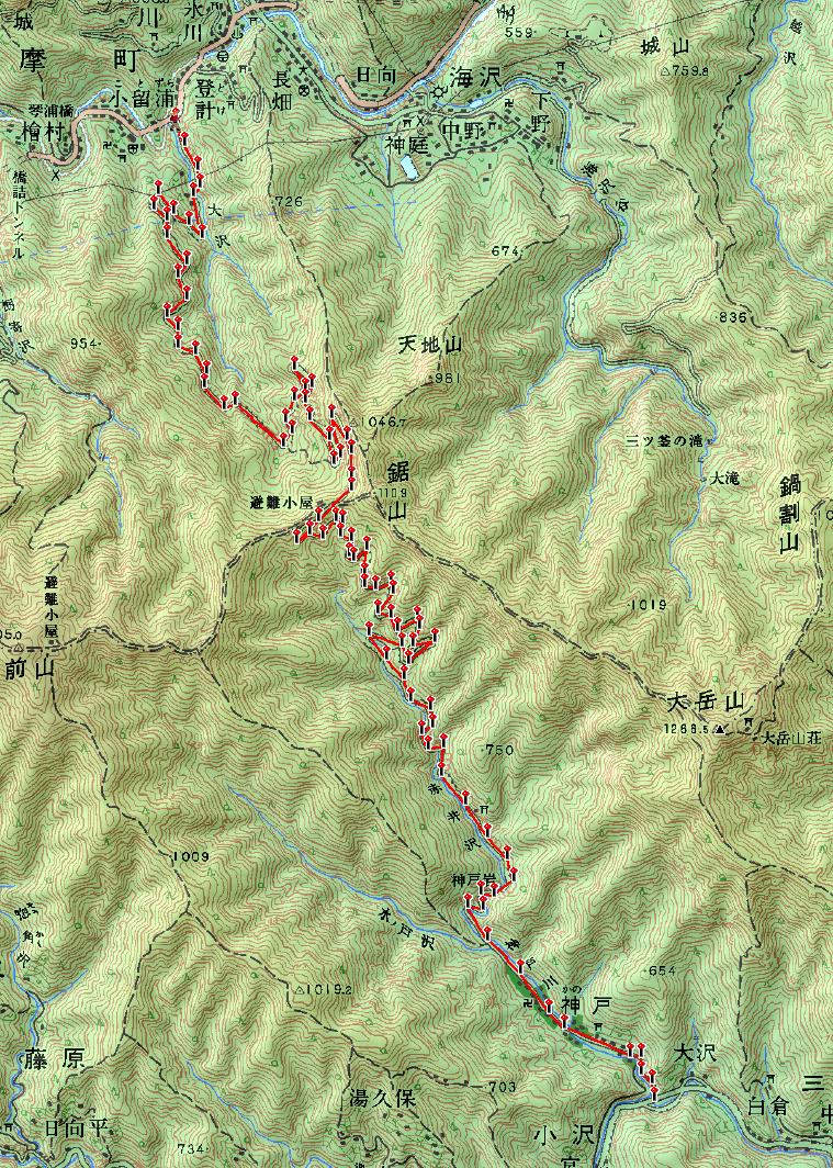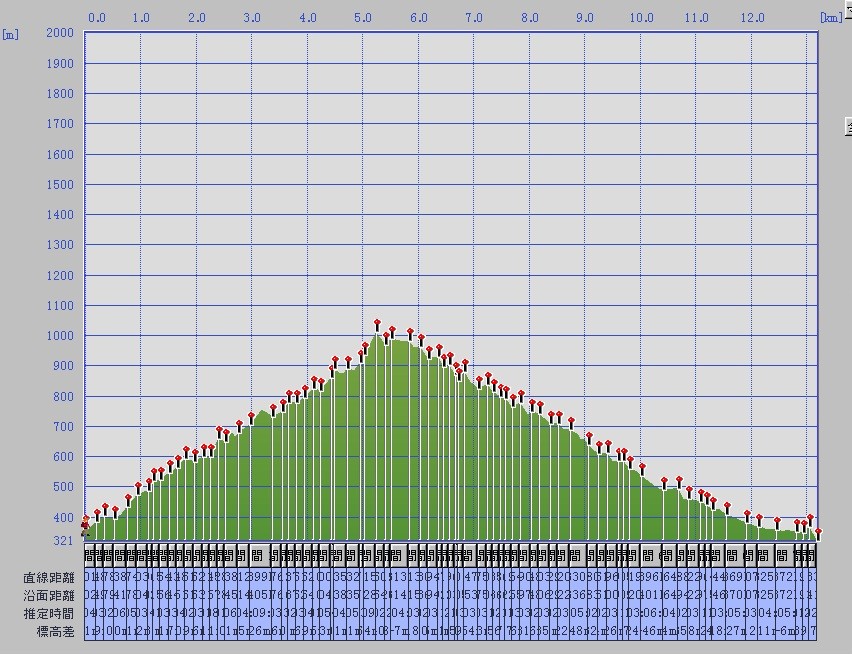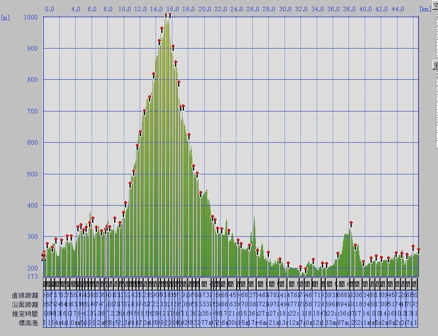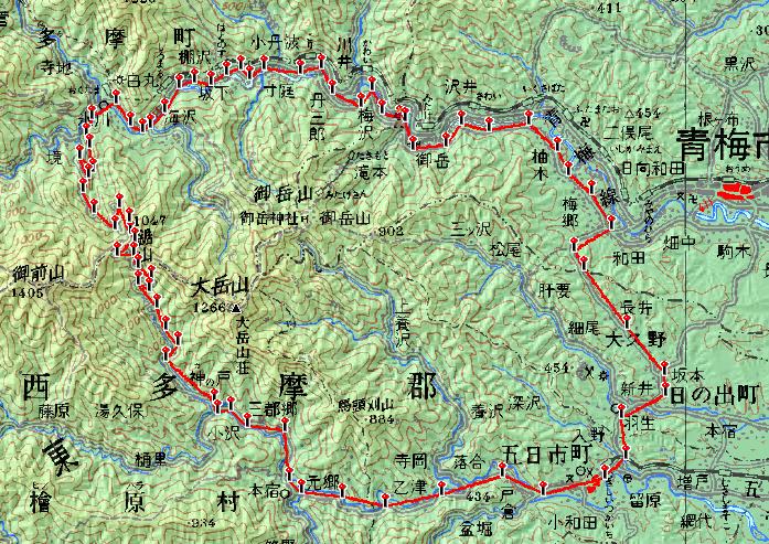 ・ 上の地図の標高データが下のグラフです。(スタート地点は梅郷付近です)