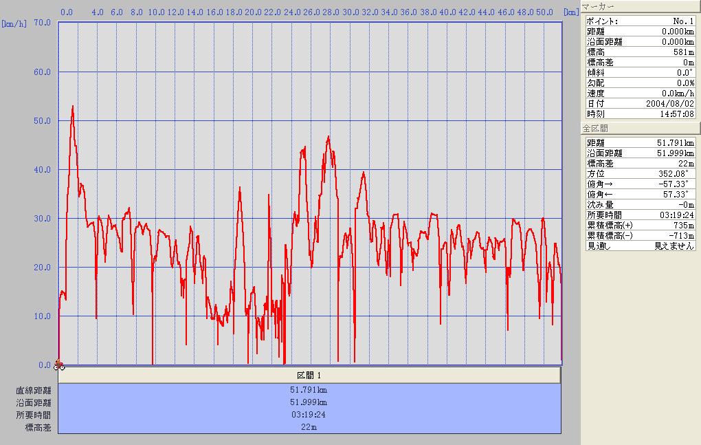 ・走行地図です。左回りに走ってきました。走行距離は52km程度です。