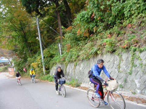 休憩の後も急坂が続いているため、ひたすらペダルを踏む。 |