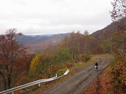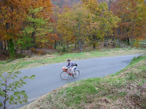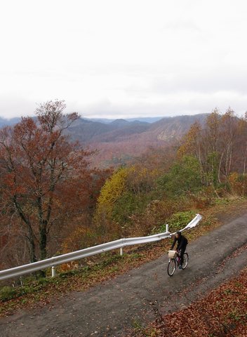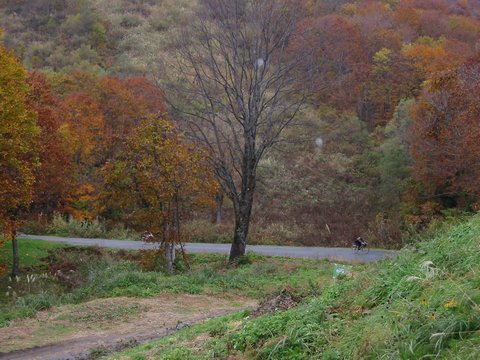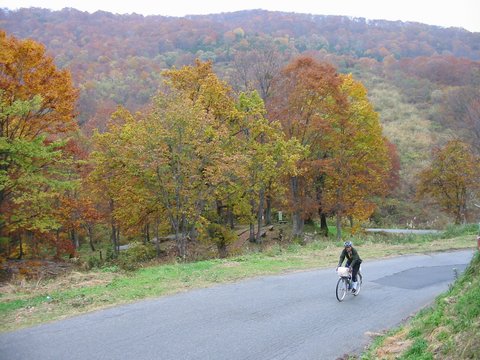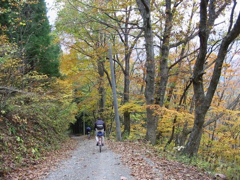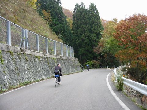 ・中年チャリンコ団の定例のサイクリングに参加し、紅葉を求めて小谷温泉と乙見山峠を走ってきました。