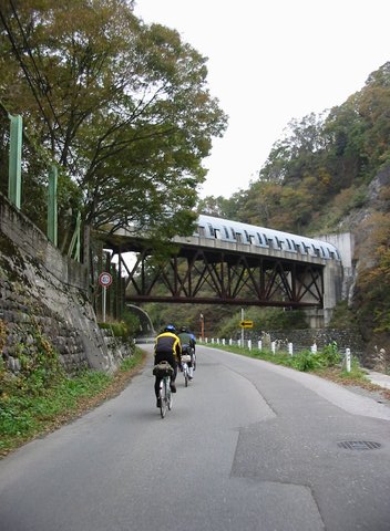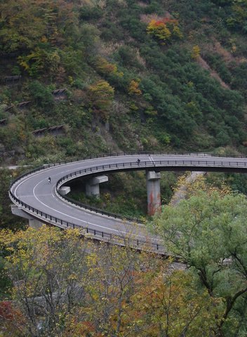 小谷温泉の近くには、ループ状の急坂もあった。 |