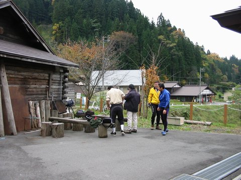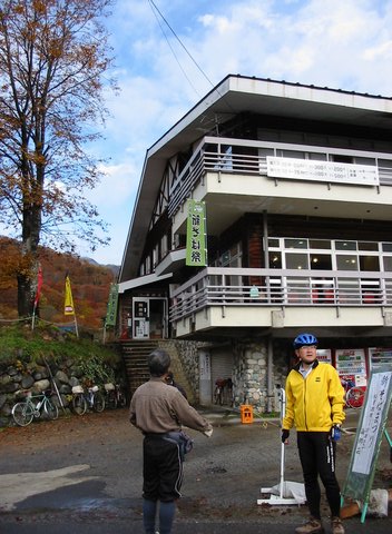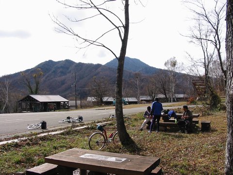 笹ヶ峰の国民休暇村で小休止。10月末とは思えない、とても暖かい日であった。 |