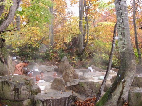 回りに囲いが全くない開放的な露天風呂。紅葉を見ながらの入浴はとても気持ちよかった。 |