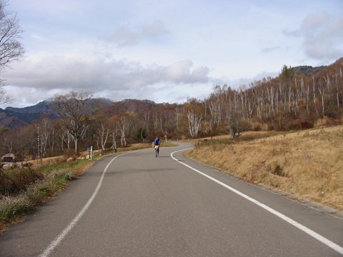 小谷温泉の入り口までは、ほとんど下り坂なので、快調に走る |