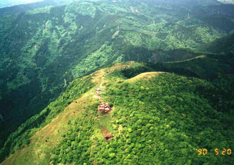 1990.5.20 ヤグラ岳テイクオフ場をトップアウトして撮影 (山頂の真中の赤い所からテイクオフ)