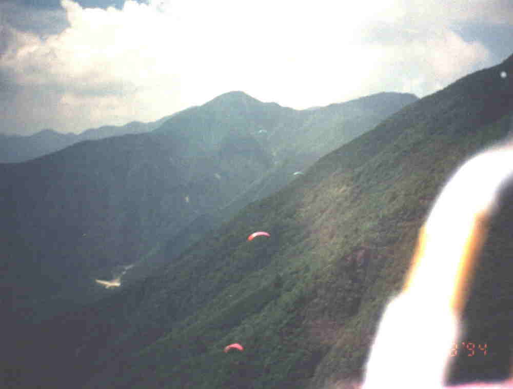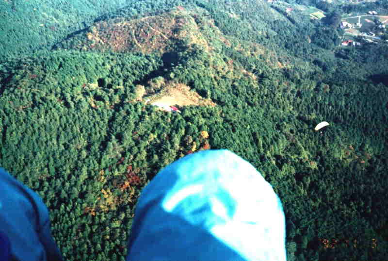 1990.10.10 足柄のヤグラ岳からのフライト 下に見えるグリーンのパラは友人の中津川氏です