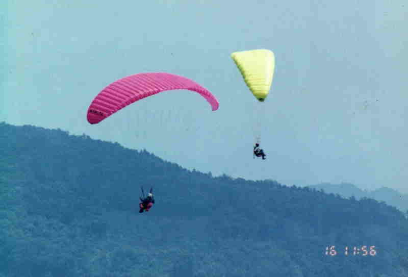 1992.5.16 師匠の上坂さん(黄色)と同じサーマルの中でセンタリングしている所です ピンクが私です