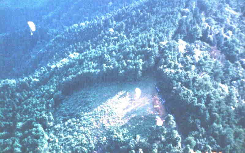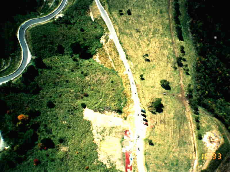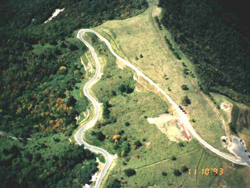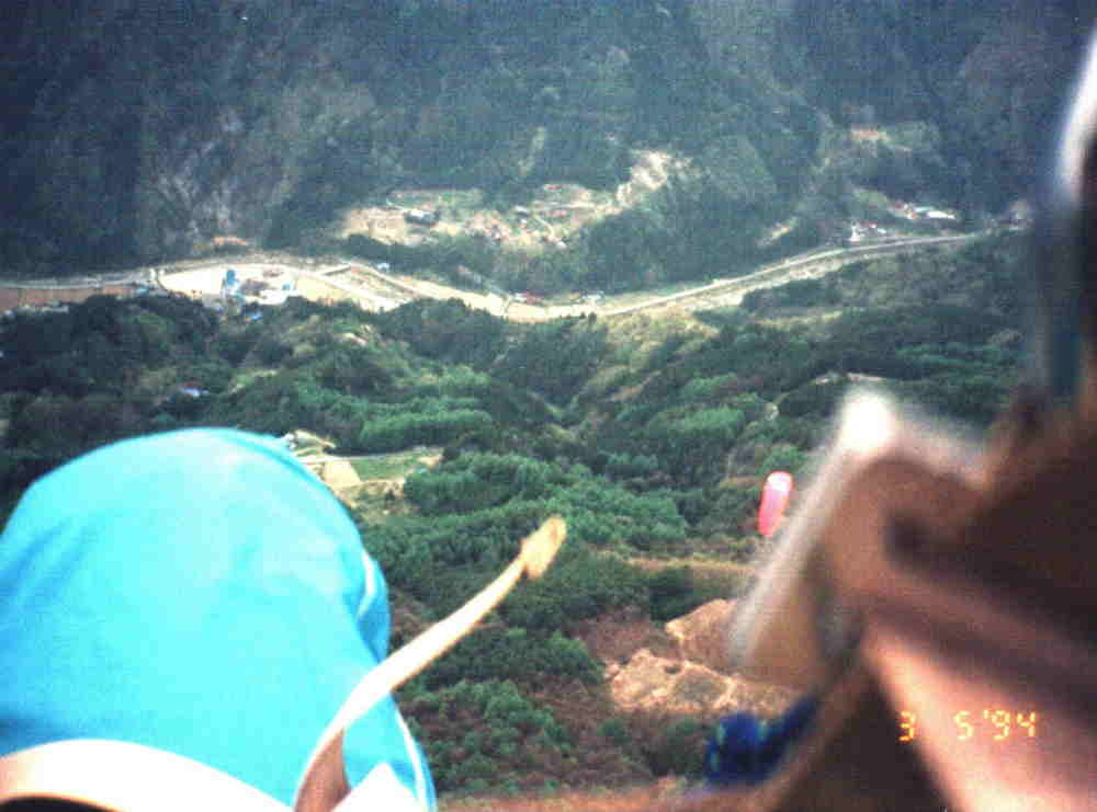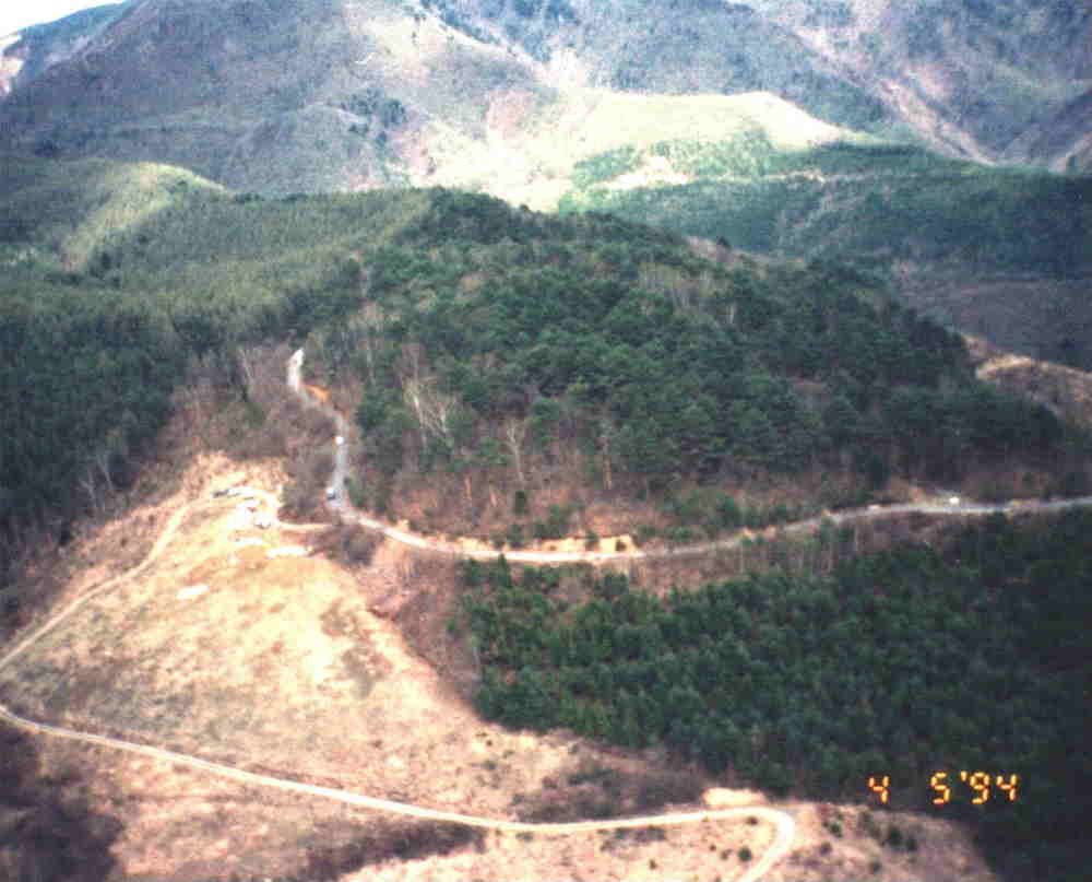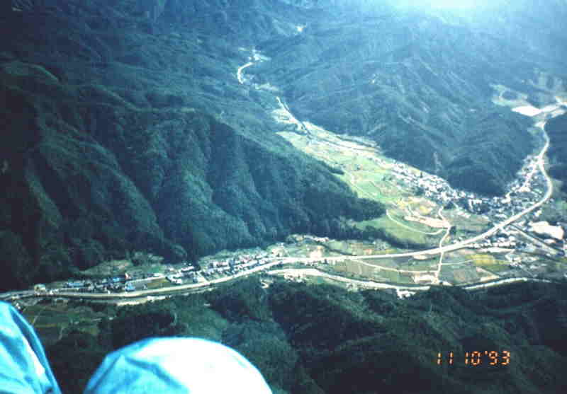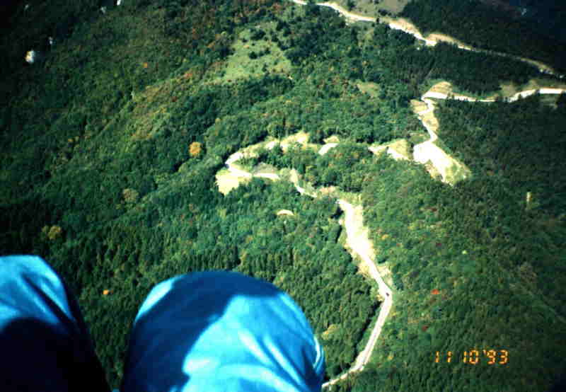 1993.10.11 長野県平谷村の「とんびーず」というクラブのフライトエリアにて くの字になった道路の右上から飛び立ちました