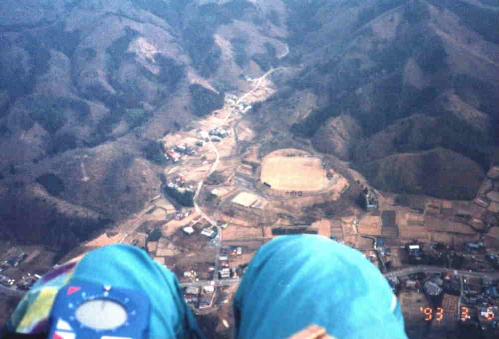 1993.3.3 埼玉県秩父の立山パラポートにて 前方の丸い空き地は長瀞の野球場です