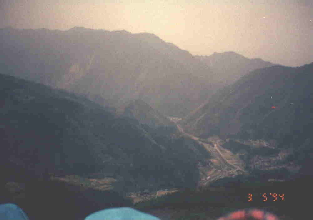 1994..5.3 長野県大鹿村 鹿塩牧場フライトエリア 谷の中のランディグ場に向かう
