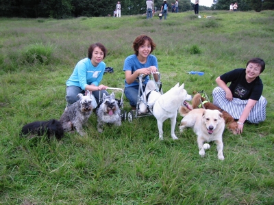 シロは前足が強いため、草のうえならば、車椅子が無くてもすごい勢いで走ります。 |