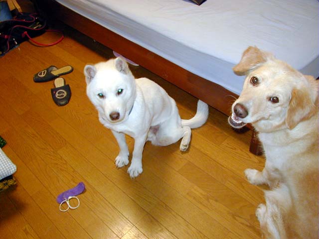 ・ 2002.10.29 KobayashiさんとOtakeさんが、シロの車椅子を見せに、我が家を訪問してくれました。