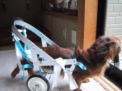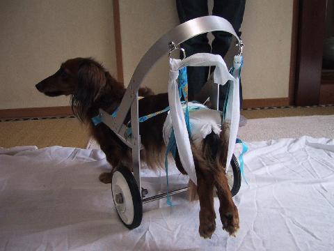 >でも元気一杯に前足だけで歩き廻る姿が不憫で、何かいい方法が無いかと、検索したら、あ・り・ま・し・た! hiroさんのHPが・・・
